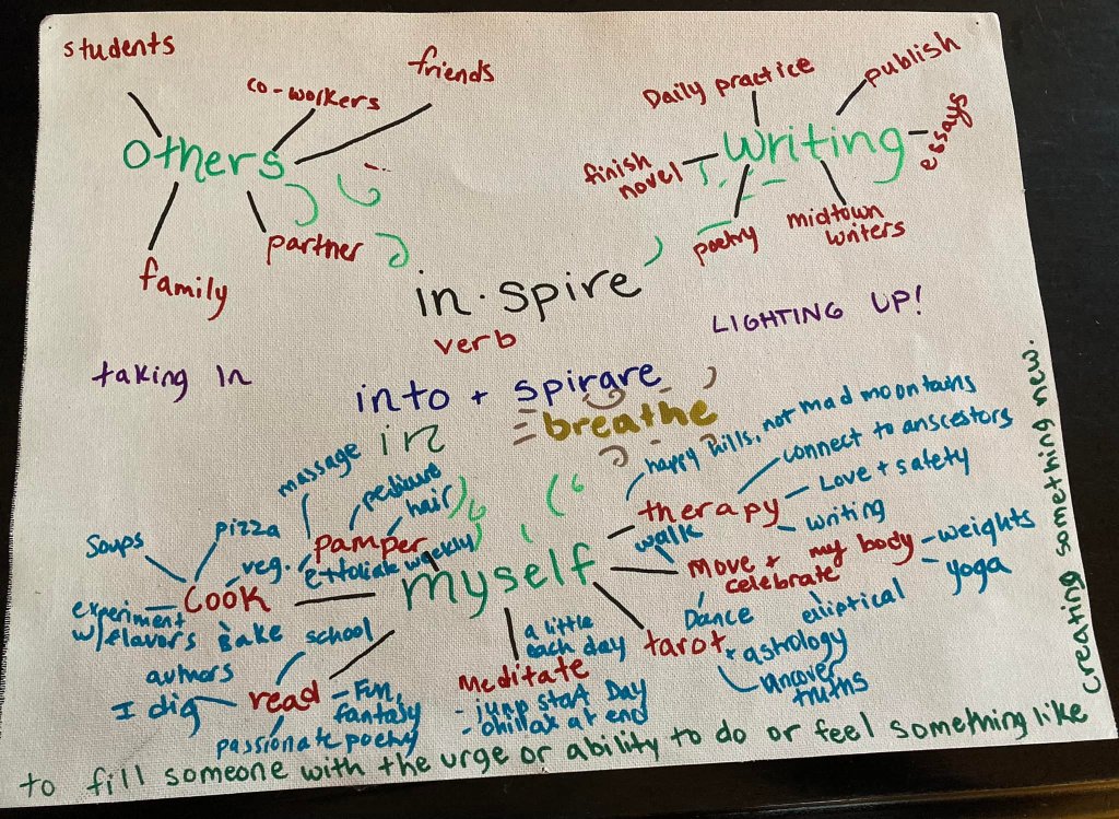 Ever since 2020, I’ve made mind maps to dive into what I wanted to invite into my life. I don’t believe in manifesting each desire I have, but I do buy into having an image, word, or list posted somewhere to ground me when I’m worried, push me forward when I’m lost, and remind me that I have accomplished so much more than I give myself credit for or am even aware of.