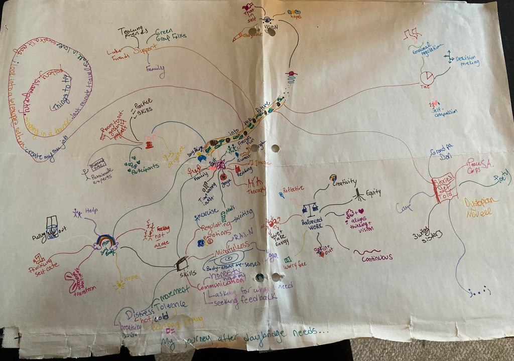 2020’s mind map was about the FUTURE. It was actually made in one of my groups when I was in treatment. In case you didn’t know, Anxiety, Depression, Panic Attacks, Suicidal Ideation. If you are there right now, reach out to me. I have an excellent program recommendation and choice hospital. I couldn’t have been luckier to land where I did. I really believe it’s a big part of where I ended up.