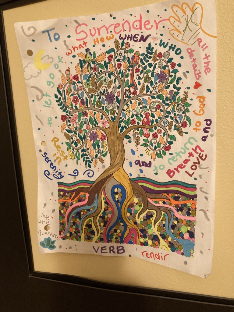 The instructor had us write and draw in our mind maps all that we needed and wanted in order to keep on our healing journey after the program. I had this on my wall and kept looking at it daily. It was a constant reminder of my internal compass and what I needed to do now. And it started this intention mapping ritual for myself.
